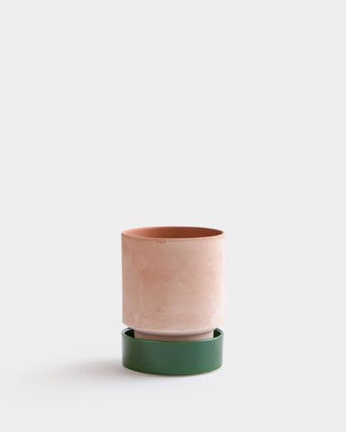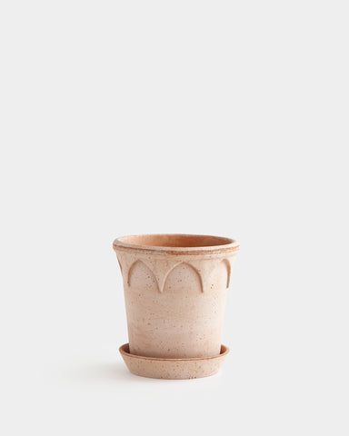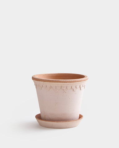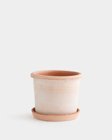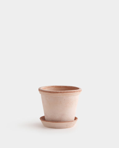 bergs potter hoff planter 14 cm 5" rose terracotta with glazed rust saucer
