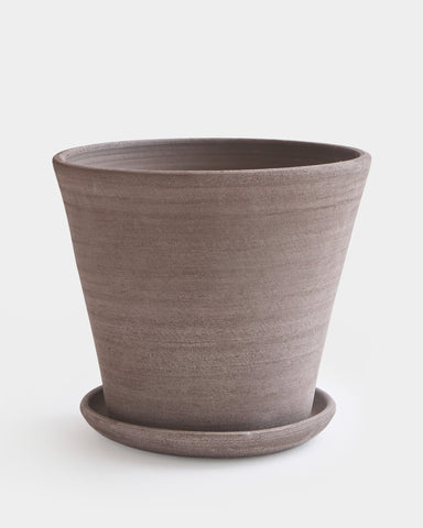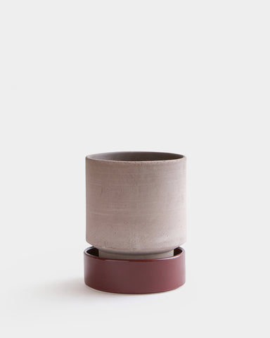 bergs potter hoff planter 18 cm 6" grey terracotta glazed burgundy saucer