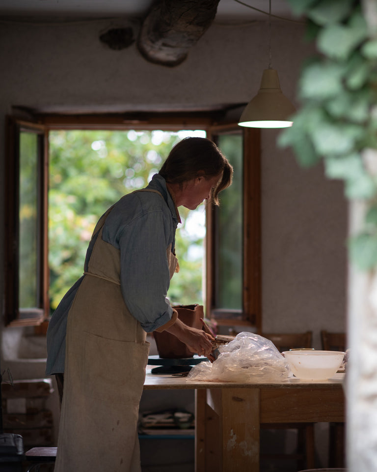 Alissa Coe lives and works in Piemonte, Italy. Her ceramic practice is heavily inspired by the landscape, both in its formal qualities and materiality. Her serenely beautiful work is intended for daily use.