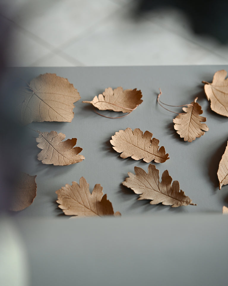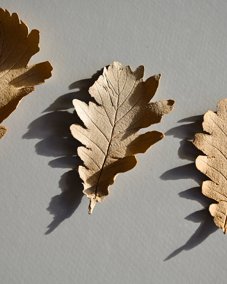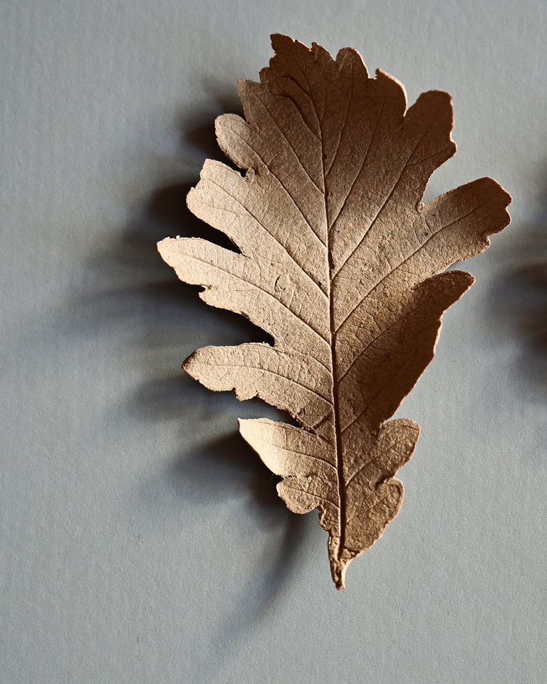 Charming sculptures for surface or wall-mounted display. Derived from oak leaves gleaned by the artist on walks near her home and studio. Made from red-coloured stoneware from Italy. Intentionally textured surface features a unique one-sided impression and feathered edges. Magnet set provided separately or pre-installed upon request. One of a kind and handmade by Alissa Coe.