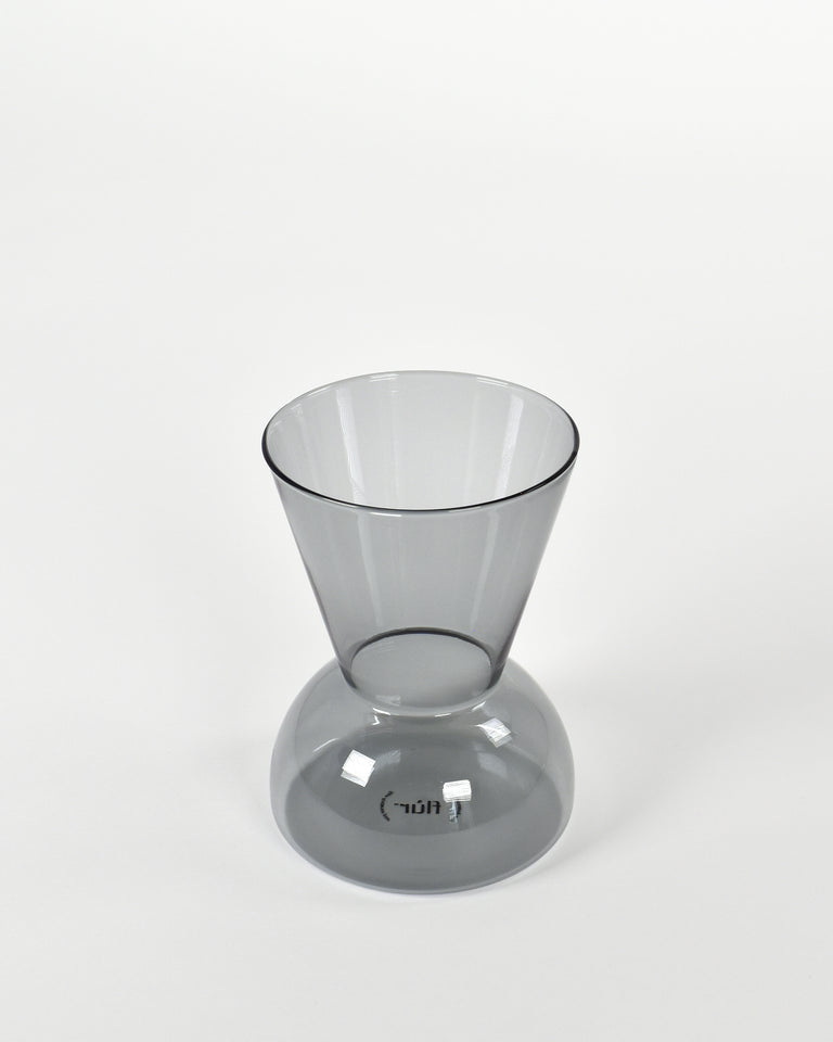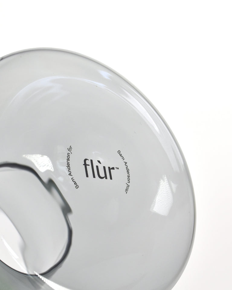 A broad-mouthed bud vase for substantial or more spare, asymmetrical displays. One of five (5) contemporary forms produced in collaboration with designer Sam Anderson and exclusive to Flùr. Handmade from lightweight, shatter-resistant borosilicate glass. Available in clear, grey or green.