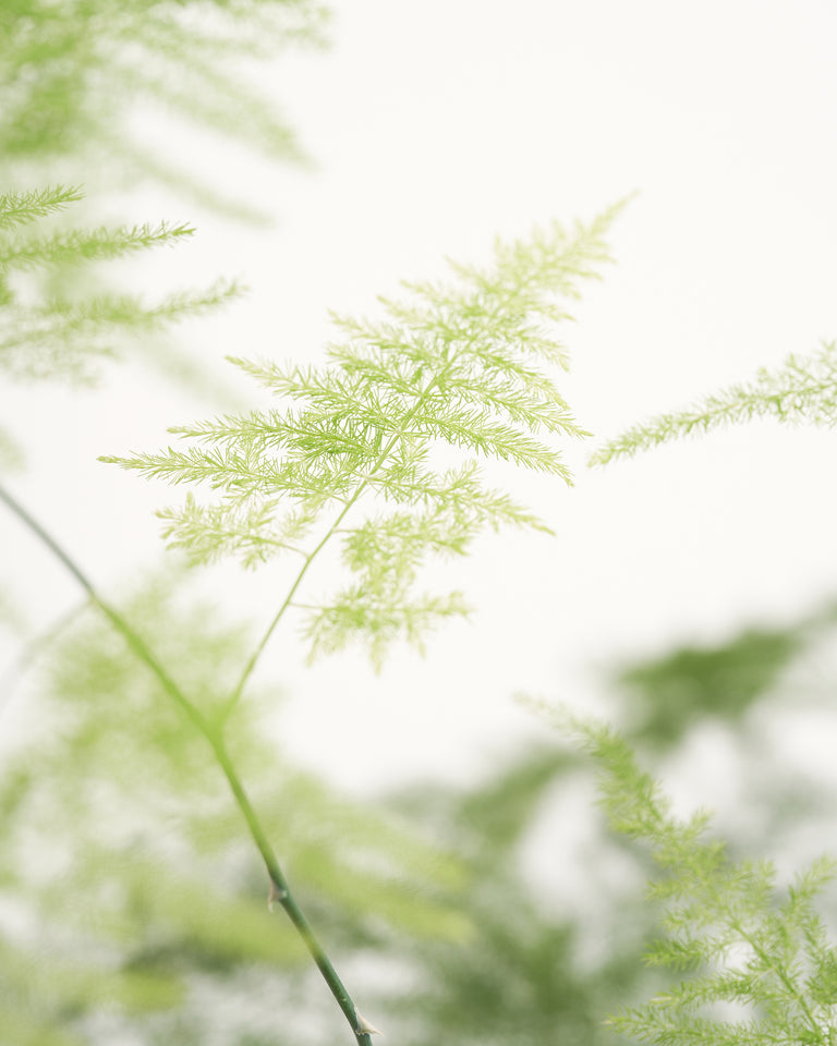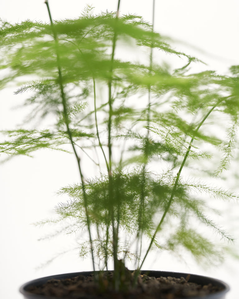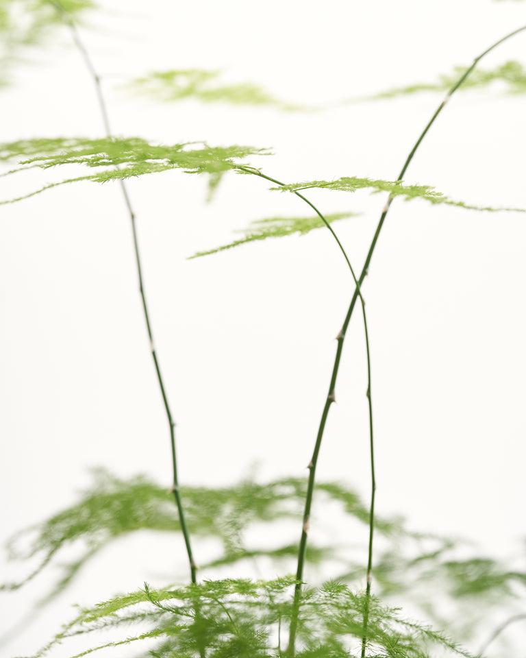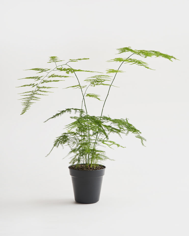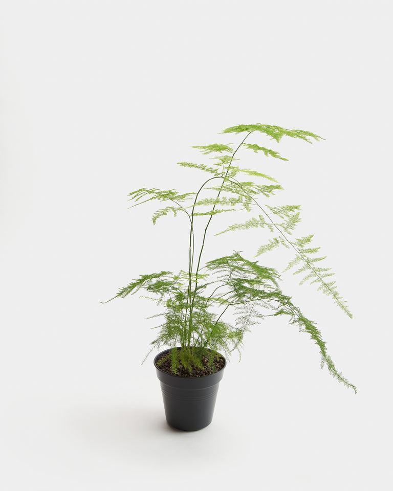 A delicate and exuberant vining plant. Pointed, fine-leafed lace-like fronds emerge in dense, arching tiers of growth and resemble asparagus spears in their infancy. Colour matures from acid to forest green. Suitable for a tabletop or windowsill with bright indirect to filtered sunlight. Thrives in high humidity. May be trimmed to a preferred shape or allowed to develop and sprawl organically. Well suited to one of our small Bergs Potter planters.