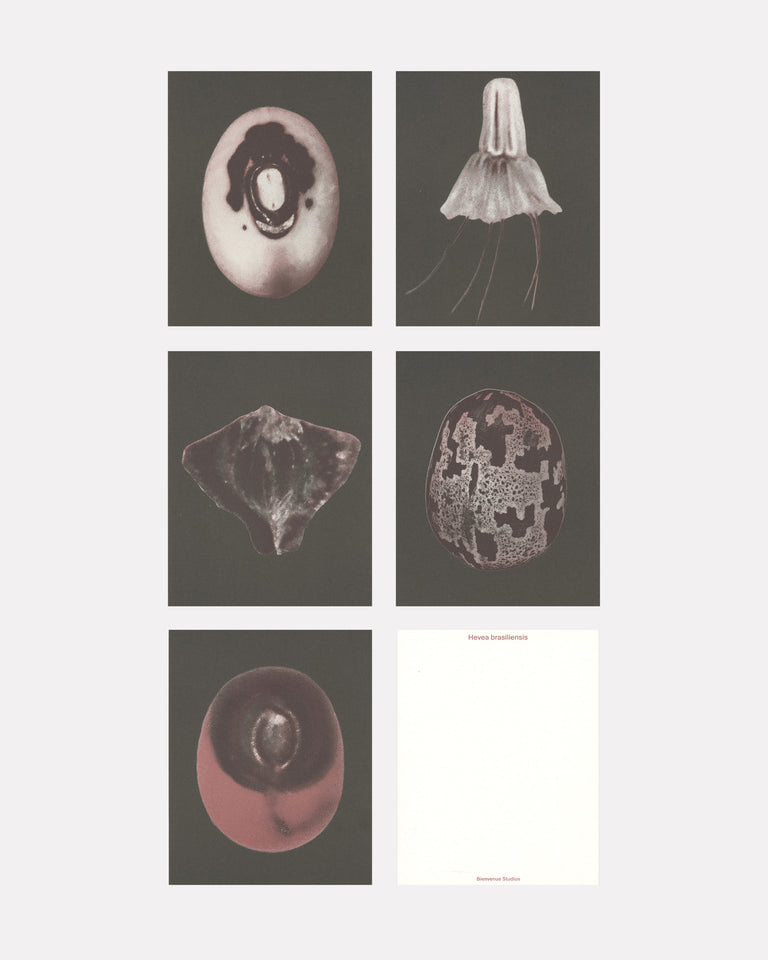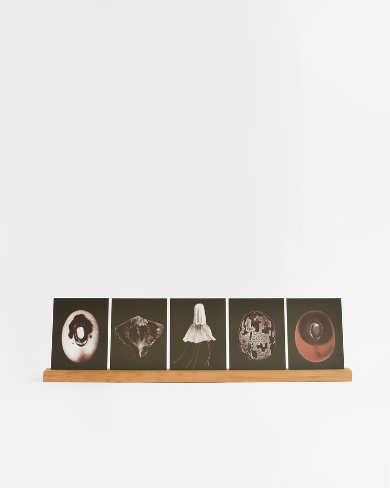 A set of five (5) postcards featuring individual, microscopic seeds from various plants. These strange subjects are meticulously rendered in a ghostly palette of burgundy, forest green and burnt umber. Display on brass or wood holders (sold separately). Offset printed in Zurich on natural, FSC certified paper (400g / m2). Wrapped in a plastic sleeve with a branded insert.