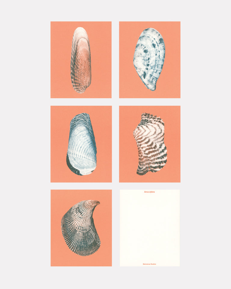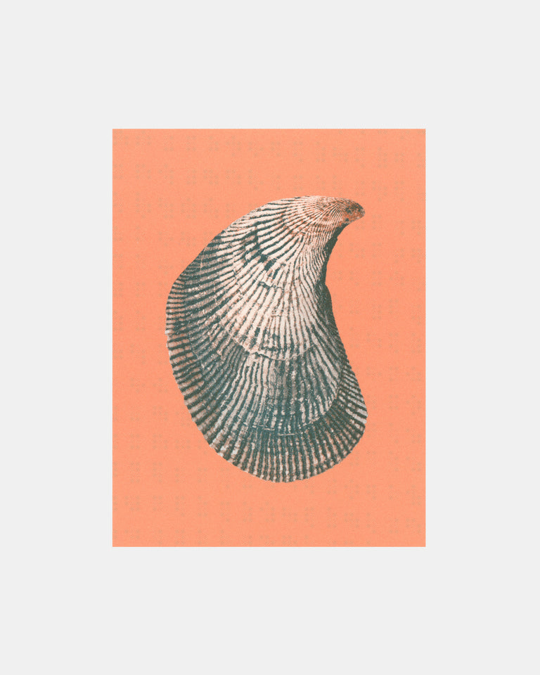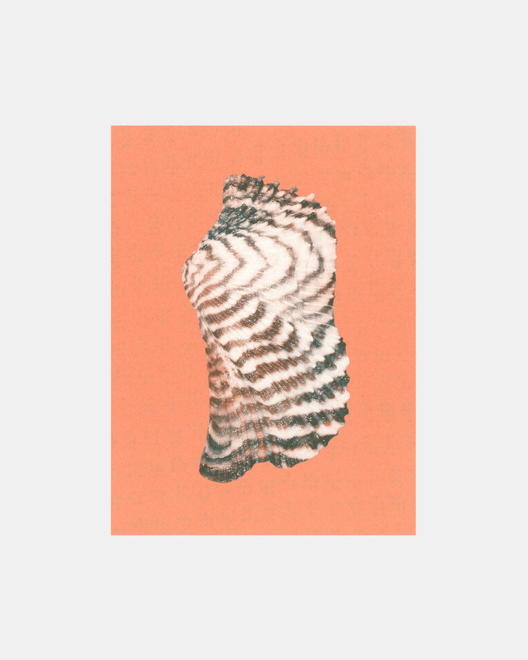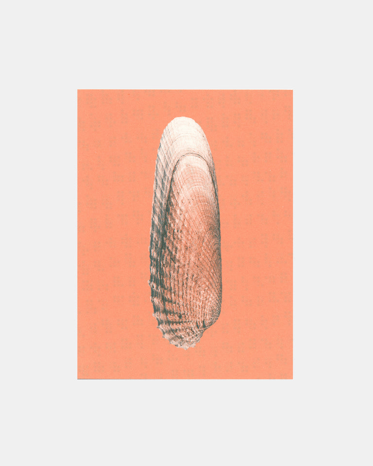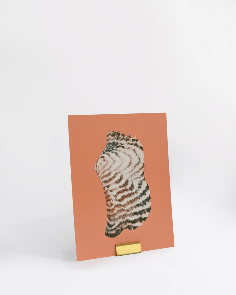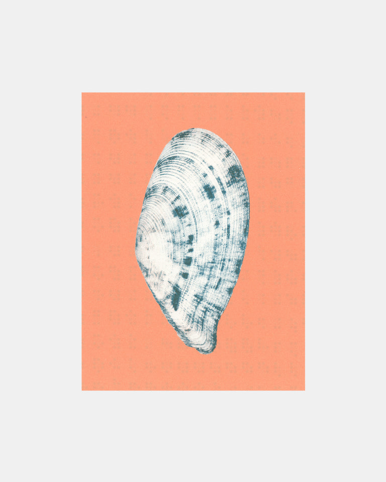 A set of five (5) small prints featuring singular shells from various bivalves of the Pacific Ocean. These striated subjects are meticulously rendered in a sun-bleached palette of turquoise and peach. Display on brass or wood holders (sold separately). Offset printed in Zurich on natural, FSC certified paper (400g / m2). Wrapped in a plastic sleeve with a branded insert.