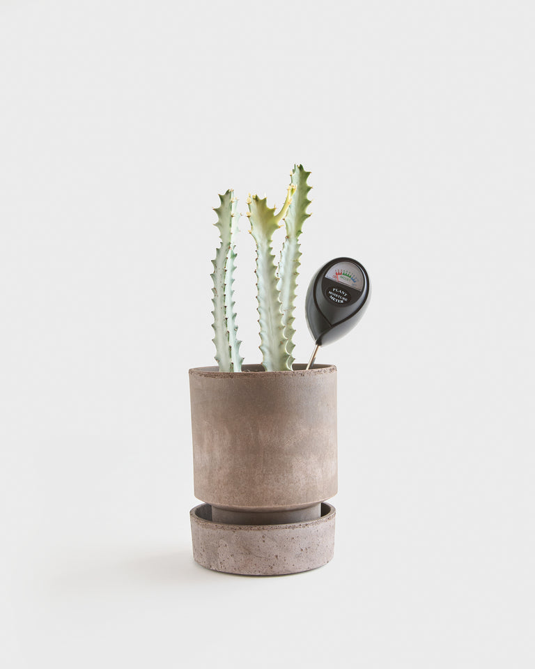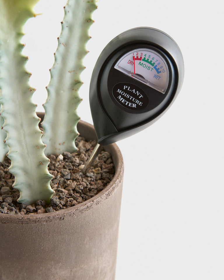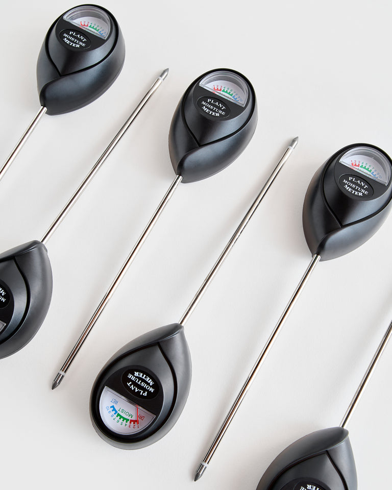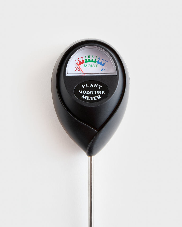 A tool that helps remove the guesswork from plant watering. Indicates soil moisture level within a dry (1-3) to moist (4-7) to wet (8-10) range. Insert probe to mid-soil depth (for tabletop plants) or base-soil depth (for floor plants), in several spots, throughout the nursery pot or planter. Note moisture level(s) once dial stabilizes. (Take care to avoid piercing roots or rhizomes, which provide some resistance to probe.) Avoid watering plants that are wet (7-9). Apply water, in moderation, to soil that is dry to mildly moist (1-4). Ensure plants do not remain fully dry (1-2) for long. After watering, wait 10-15 minutes. Reinsert probe in several spots to verify moisture level. Apply additional water, as needed, to achieve a consistent high moist reading (6-7). Remove probe from soil and wipe dry after use. Do not immerse probe in water or touch probe, as this will damage it.