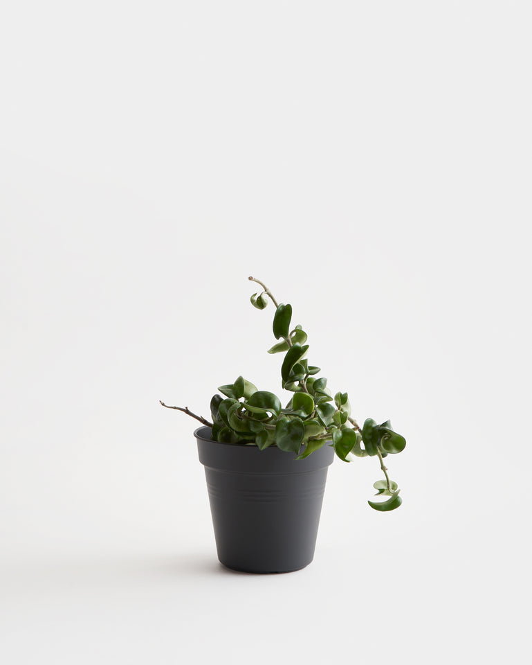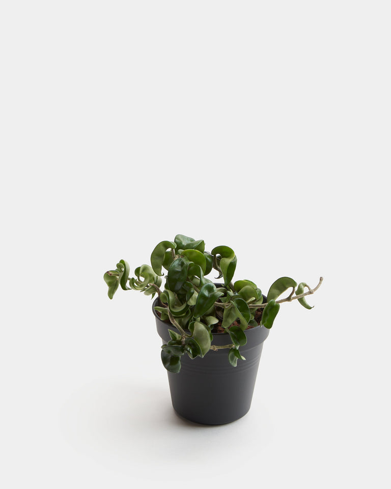 A slow-growing variety of hoya admired for its dense, twisted and pendulous growth. Features deep green ovate leaves, rippled and curly like pasta; these emerge in close succession and often obscure stems underneath. Mature vines resemble long emerald ropes. Hoyas — aka "wax plants," thanks to their thick, waxy leaves — are among our favourite indoor houseplants. The species is largely drought-tolerant, endures for years in the same pot, grows to epic proportions, propagates easily, and produces recurring clusters of fragrant, star-shaped flowers in ideal growing conditions. Best suited to any small tabletop planter Bergs Potter. Prefers bright indirect to filtered sunlight. Avoid exposure to direct afternoon sun, as this may scorch and permanently damage leaves. Sensitive to overwatering.