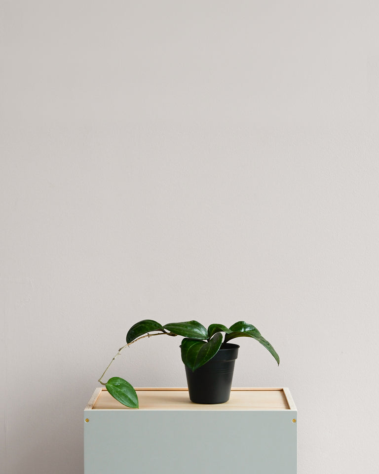 A variety of hoya celebrated for its dramatic foliage and show-stopping blooms. Native to the Malaysian state of Sarawak. Leaves are large, leathery, and broadly ovate, often measuring 6-8" long and 3-4" wide — noticeably bigger than most common Hoya varieties. Growth is moderate to vigorous, under ideal conditions. It can be trained onto a trellis, moss pole, or hoop, or allowed to spill dramatically from a hanging planter. It tends to grow in flushes, developing a run of new leaves or stems, followed by a period of rest before blooming. Mature plants produce massive umbels of up to 50 star-shaped flowers, each waxy and luminous with a creamy white corolla and pinkish to red corona. Blooms are intensely fragrant, especially during nighttime. Hoyas remain among our favourite indoor houseplants as they are largely drought-tolerant, endures for years in the same pot, grows to epic proportions and propagate easily. Best suited to any small tabletop planter from Bergs Potter. Prefers bright indirect to filtered sunlight. Avoid exposure to direct afternoon sun, as this may scorch and permanently damage leaves. Sensitive to overwatering.
