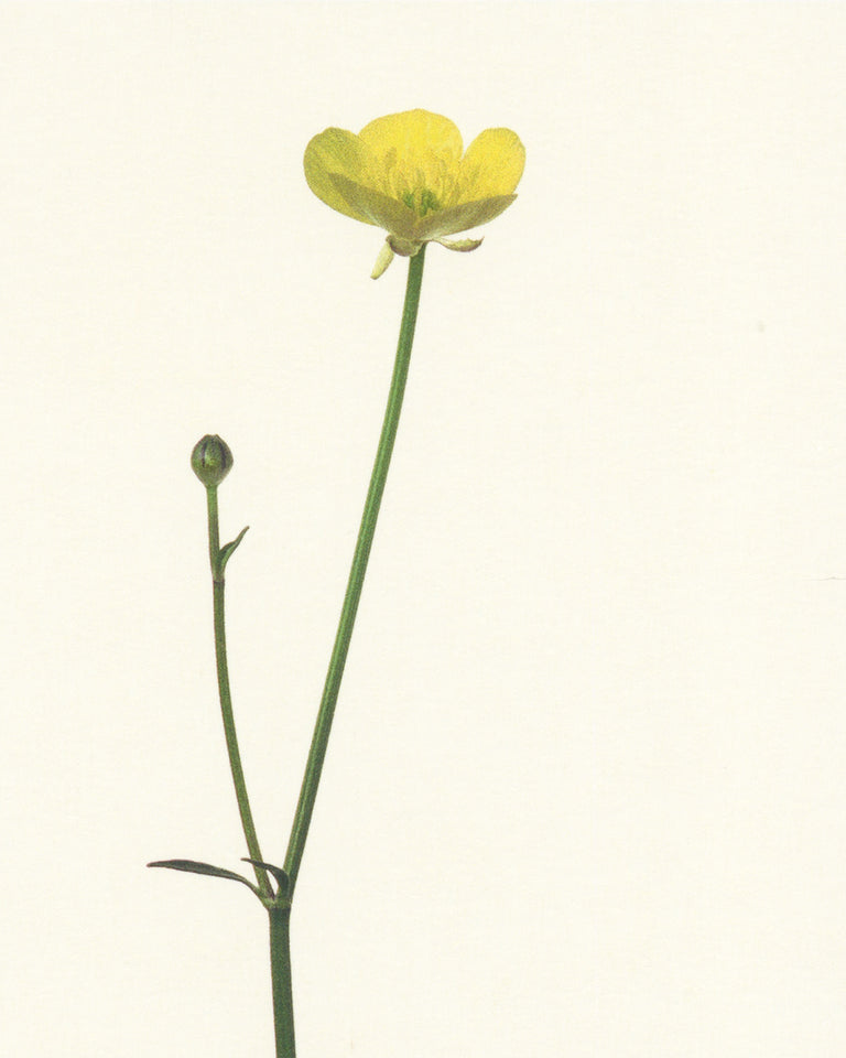 An exquisitely detailed portrait of a yellow buttercup flower (Ranunculus Acris).