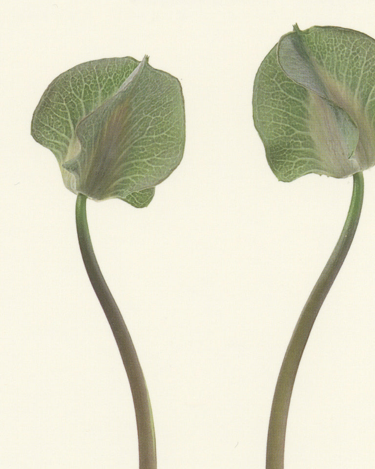 An exquisitely detailed portrait of new leaves on a cup and saucer vine.