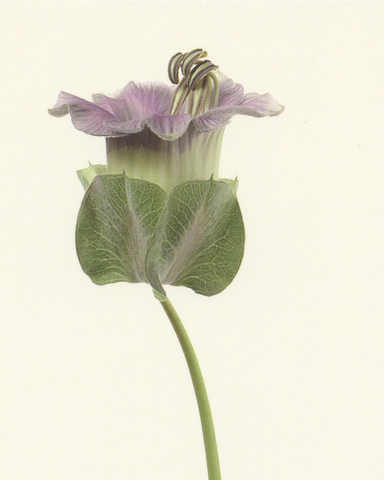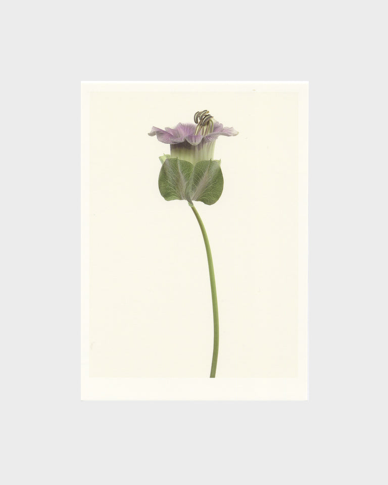 An exquisitely detailed portrait of a cup and saucer vine flower (Cobaea Scandens).