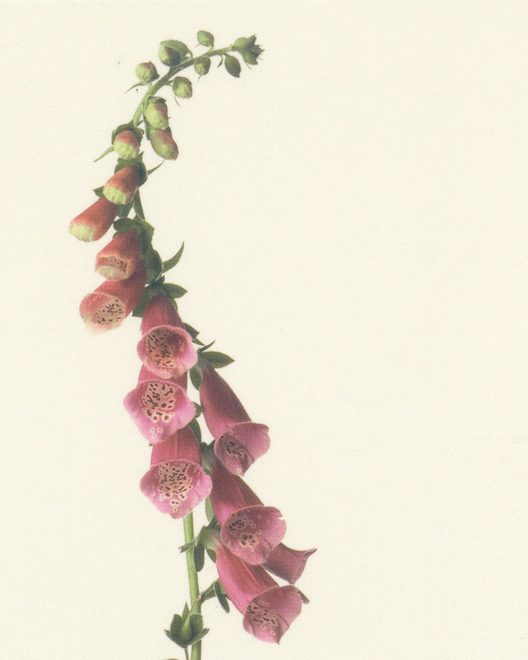 An exquisitely detailed portrait of a pink foxglove stem (Digitalis Purpurea).
