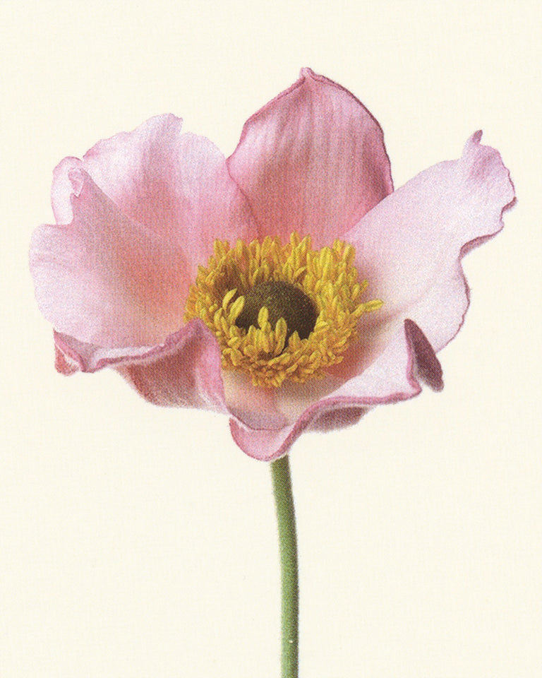 An exquisitely detailed portrait of a pink japanese anemone flower.