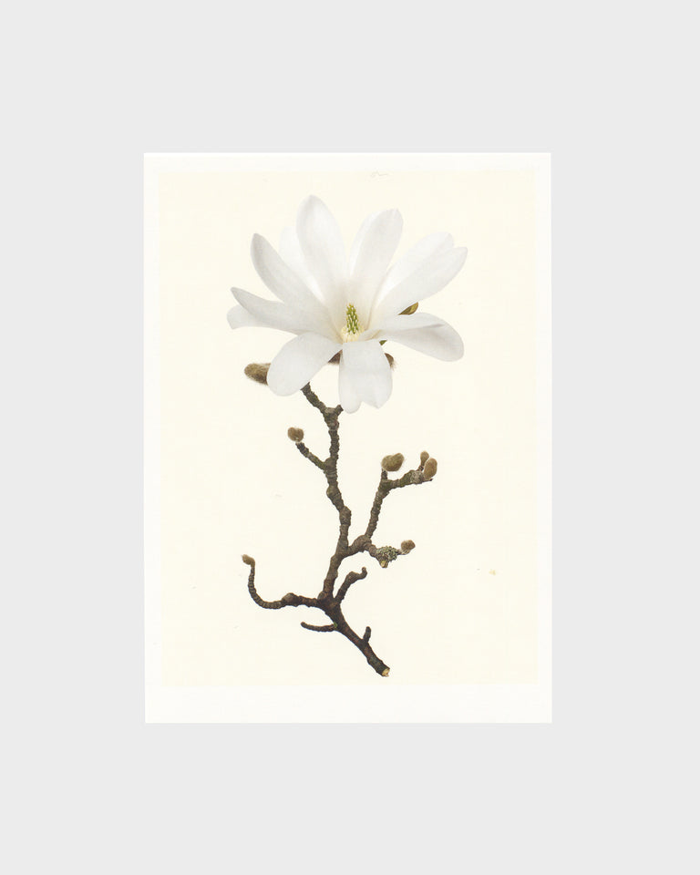 An exquisitely detailed portrait of a white star magnolia bloom (Magnolia Stellata).
