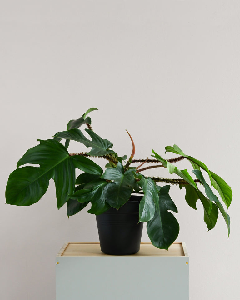 A rare climbing aroid and epiphyte that is relatively low-maintenance and highly collectible. Also known as Red Bristle Philodendron or Hairy Philodendron. Prized for its mature emerald-green foliage, which is long, deeply lobed and oak-shaped, along with it's contrasting red stems covered in soft bristles, which have a fuzzy appearance. Thrives in bright indirect to filtered sunlight with moderate watering, average to higher humidity and adequate support. A bold silhouette, texture and high-chroma contrast and a tropical vibe — what's not to love?! Avoid exposure to direct sun, as this may scorch and damage leaves. Sensitive to cold and drought.
